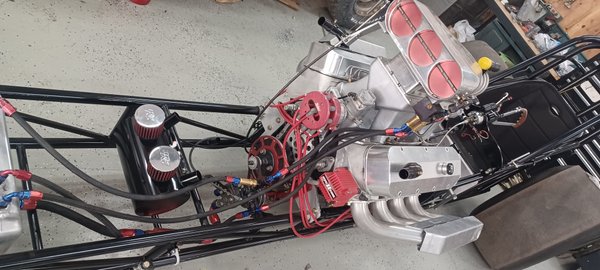CAR HAS ALL NEW WIRING, GAUGES, 16 VOLT BATTERY WITH CHARGER, CUSTOM COOL CART TO COOL MOTOR BETWEEN ROUNDS. BILLET FRONT WHEELS AND MONO LIGHT WEIGHT REARS.